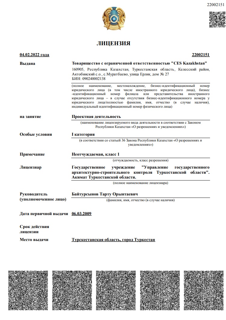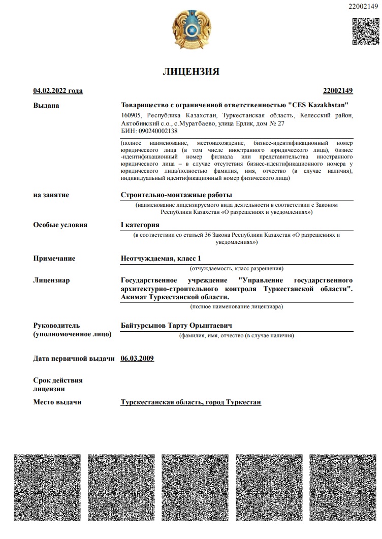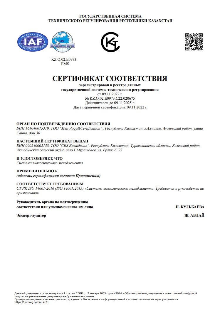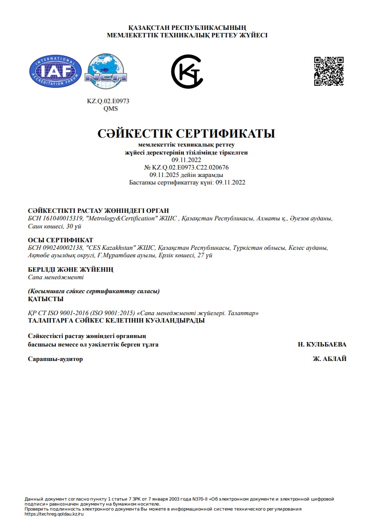 В ТОО «CES Kazakhstan» мы уверены, что безопасность и качество - это неотъемлемые составляющие успешной деятельности.